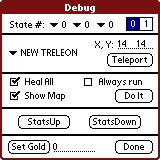 Testing your adventure with Debug Version of Dragon Bane IIIn the tools/Palm directory of the DB2ACK is a version of the Dragon Bane II engine that includes extra debug cheats to assist level developers. Just install the DrgBane2_Dbg.prc file and you can use it to play any pre-release adventure just like the normal Dragon Bane II engine.